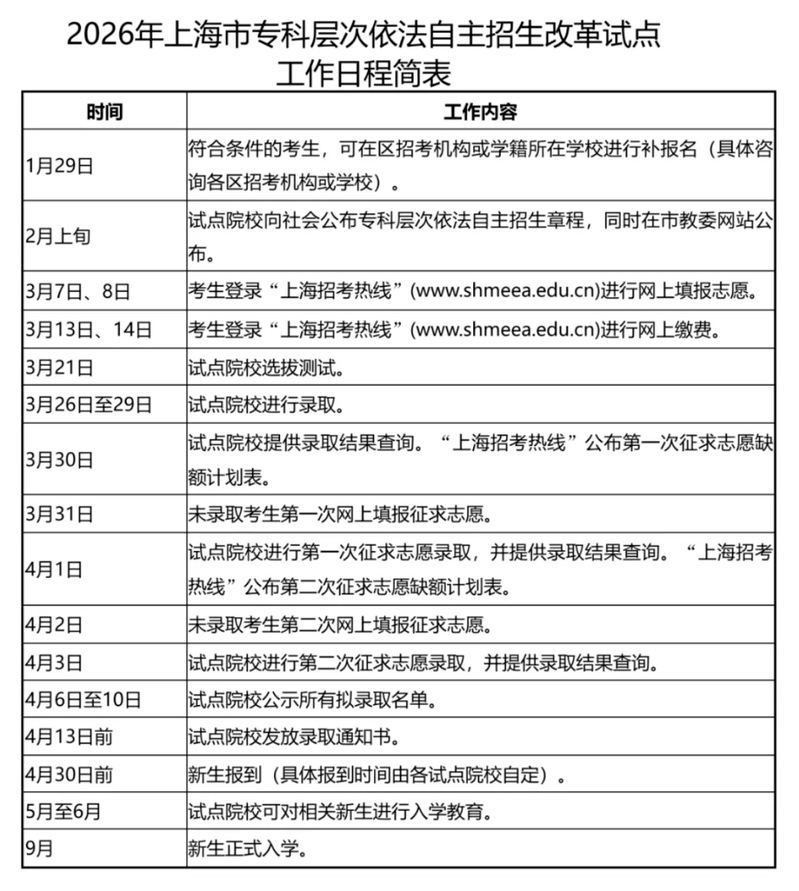 后续录取工作安排将按照“2026年上海市部分普通高校专科层次实行依法自主招生改革试点工作日程”开展,请在此之前耐心等待。